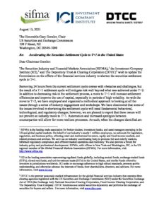 Sifma, ICI, DTCC Letter to SEC Gensler re T+1, August 13, 2021